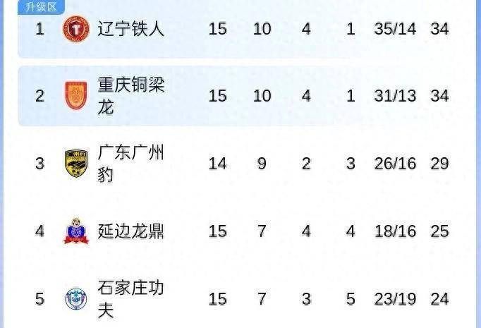 这场胜利让辽宁铁人队以10胜4平1负、积34分的成绩登顶中甲积分榜,拿下队史首个半程冠军。