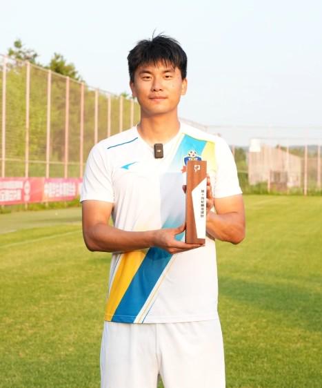 日前,延边龙鼎队后卫徐继祖领取了中甲联赛第14轮最佳球员奖杯。徐继祖在社交媒体里晒照并写道:“为自己感到荣幸感谢最好的团队❤7.12主场见”