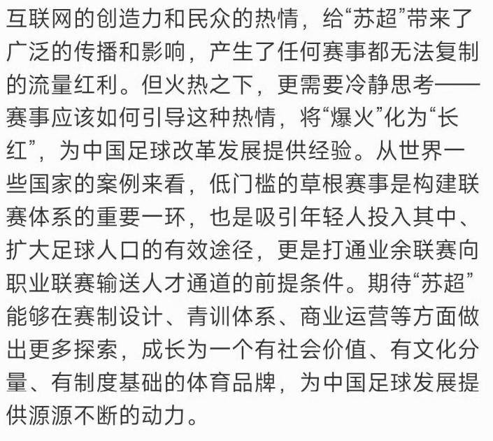 作为媒体的《北京日报》,是否真的深入了解过苏超的现实情况呢?直接指出苏超缺乏接地气的运营及泛娱乐化的倾向,难免显得有些草率。同时,这种评价也似乎偏离了媒体应有的客观公正原则,难道没有反思的必要吗?
