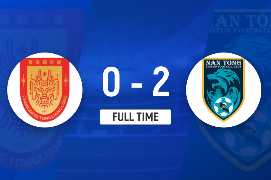 全场比赛结束,铜梁龙0-2不敌南通支云。