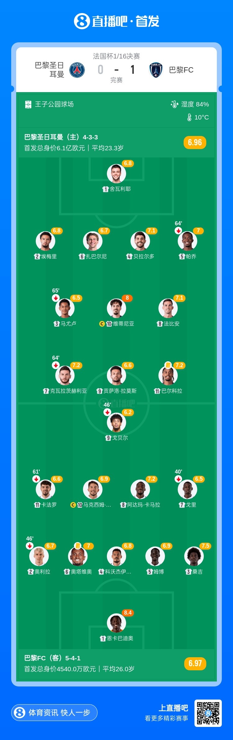爆冷!大巴黎0-1巴黎FC止步法国杯32强 登贝莱失单刀埃梅里中框
