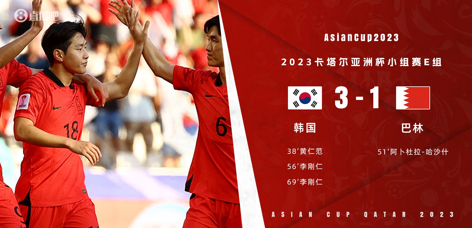 最终,韩国3-1巴林。