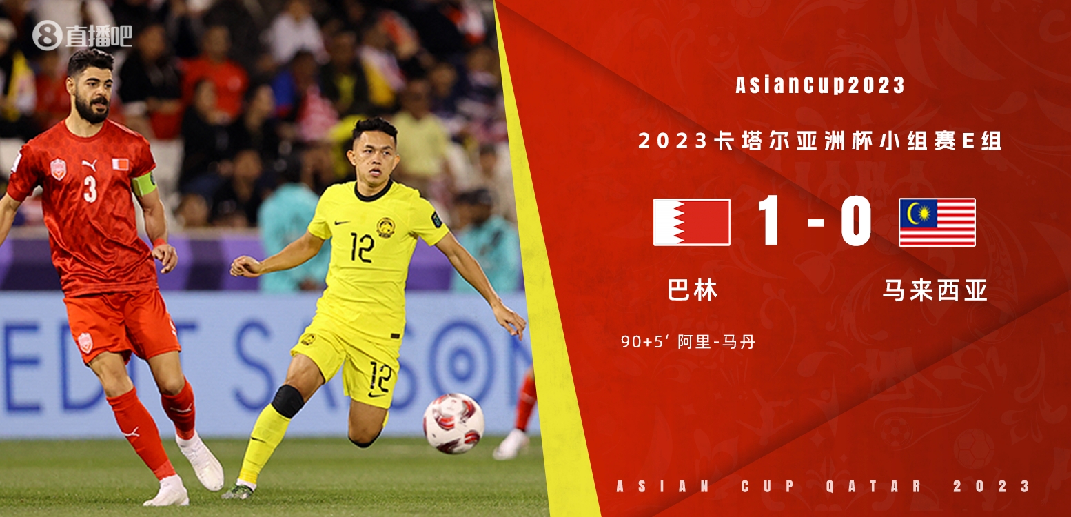 直播1月20日讯 北京时间1月20日晚上22:30,亚洲杯E组第2轮,巴林对阵马来西亚。上半场,阿里夫失良机。下半场,阿里-马丹补时最后一分钟绝杀。全场结束,巴林1-0马来西亚。本场过后,巴林积3分排名小组第3,马来西亚两战皆负排名垫底。