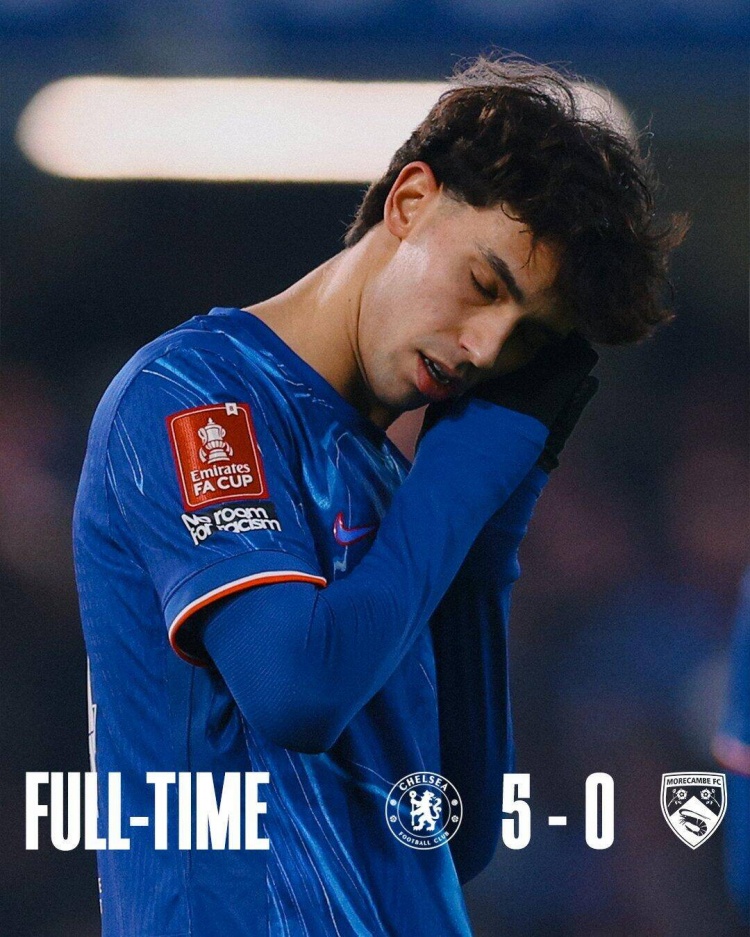 足总杯-切尔西5-0莫克姆晋级 菲利克斯双响恩昆库失点+破门