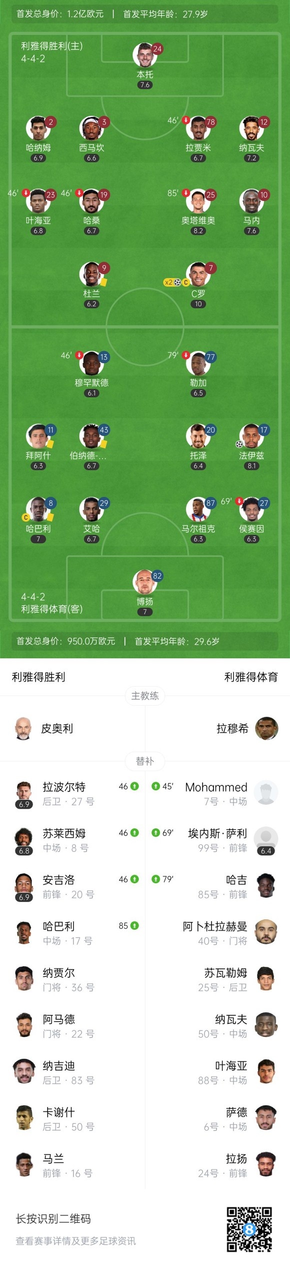 双方首发以及换人信息: