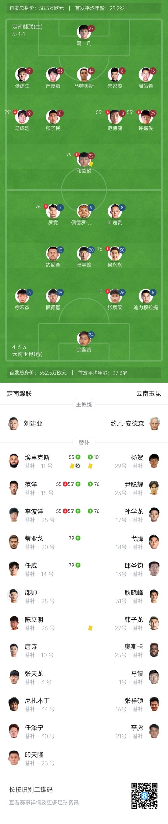 第59分钟,定南打破僵局!张子民禁区左路横传埃里克斯连续内切抽射破门,定南1-0云南玉昆。↓