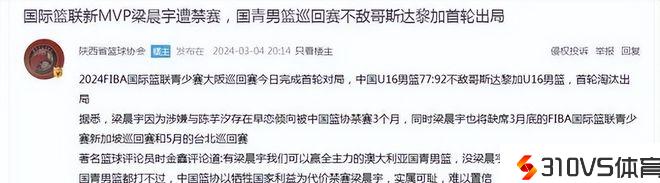 我们先来了解一下这则静态里的主角梁晨宇,梁晨宇是中国篮球U16国度队的中心球员,被以为是U16这个年龄段中国篮球第一人,实力相当不错。不过,据相关音讯显示,他在近日由于冒犯了相关条例,被中国篮协禁赛三个月。正是由于他的被禁赛,中国U16篮球国度队在2024FIBA国际篮联青少赛大阪巡回赛首轮对阵中,以77:92不敌哥斯达黎加U16男篮,首轮就被淘汰出局。所以,这才有了静态外面关于知名篮球评论员时金鑫的那段评论:有梁晨宇我们可以赢全主力的澳大利亚国青男篮,没梁晨宇连世界排名27的哥斯达黎加国青男篮都打不过,中国篮协以牺牲国度利益为代价禁赛梁晨宇,实属可耻,难以置信。