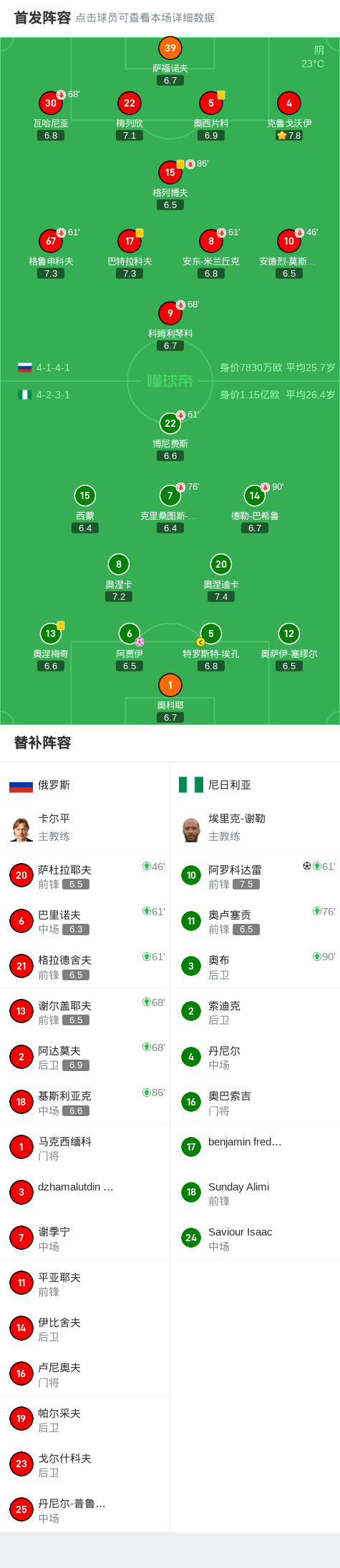 俄罗斯1-1尼日利亚,阿罗科达雷建功