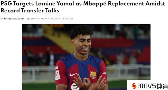 而巴黎圣日耳曼预备引进的新星是拉米内·亚马尔,并且预备不惜代价引进这位天赋少年。据《马卡报》泄漏,法甲豪门情愿为这位年仅16岁的天赋球员支付2亿欧元的天价转会费,这将成为世界足坛史上第二高的转会费。