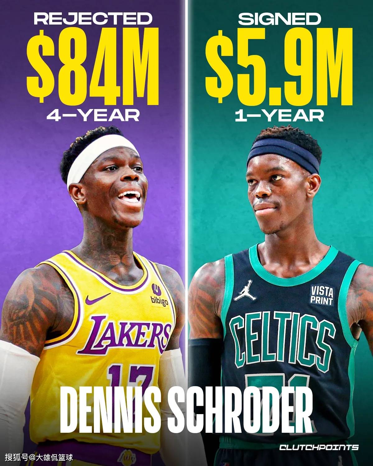 丹尼斯施罗德当时拒绝了湖人4年8400万美元的合同,最后湖人拒绝续约对方,导致他只能与凯尔特人签约了一份1年590万美元的合同。从那之后,他再也没有球队给他提供一份年薪超过2000万美元的合同。