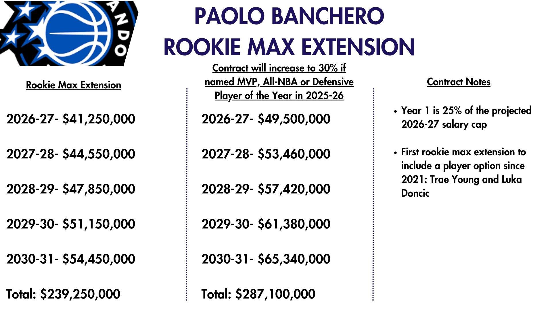 北京时间今日,魔术队官方宣布,2022年状元秀班凯罗与球队签下一份5年2.87亿美元的顶薪合同。