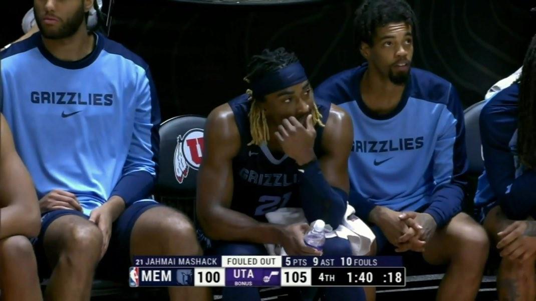 比赛第四节,灰熊59号新秀贾迈-马沙克领到个人第10次犯规,被判罚离场,全场比赛他拿到5分4篮板9助攻和10次犯规。