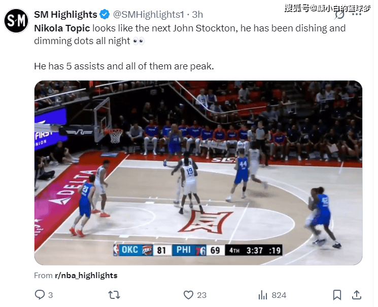 美媒HC也晒出托皮奇在抢断后个人推进快攻,最终空接助飞队友。