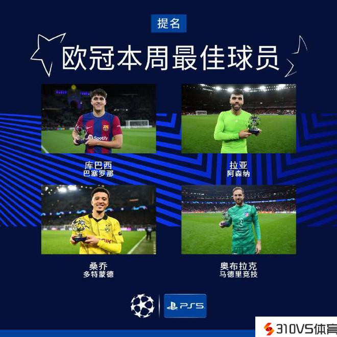 欧冠本周最佳球员候选:库巴西、拉亚、桑乔、奥布拉克在列