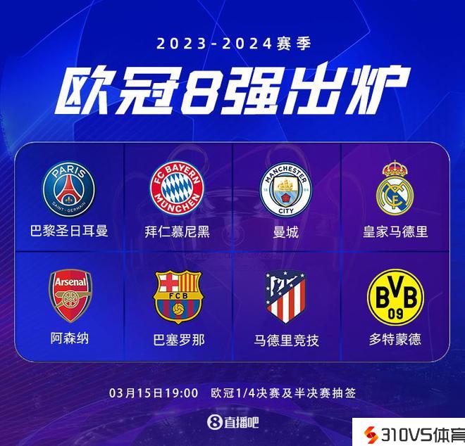 从16强赛中包围的8支球队将停止抽签,区分是阿森纳、马竞、巴萨、拜仁、多特蒙德、曼城、巴黎和皇马。