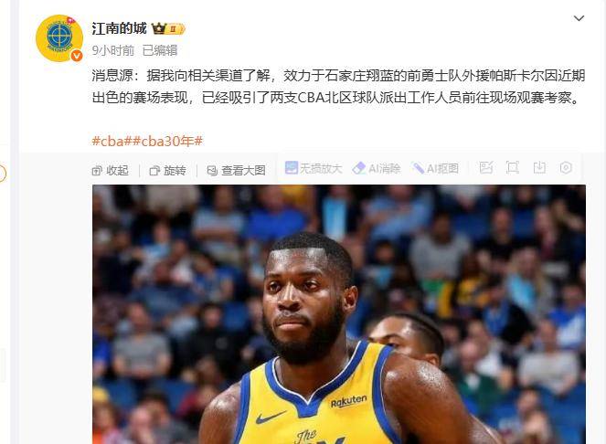 而8日,据“江南的城”透露效力于石家庄翔蓝的前勇士队外援帕斯卡尔因近期出色的赛场表现,已经吸引了两支CBA北区球队派出工作人员前往现场观赛考察。