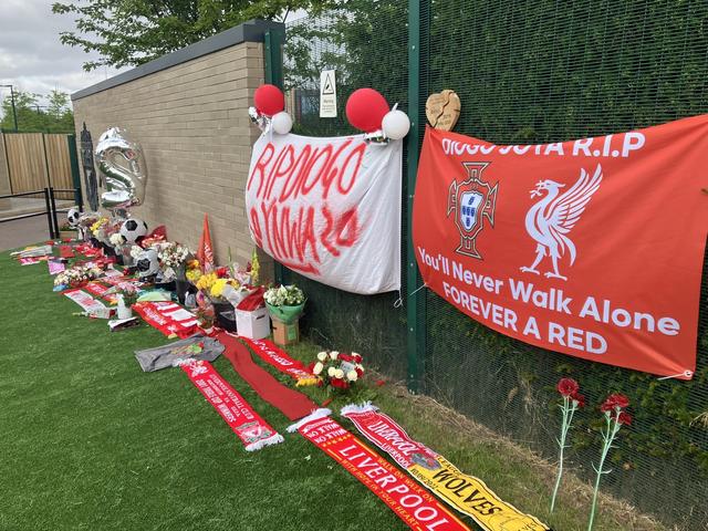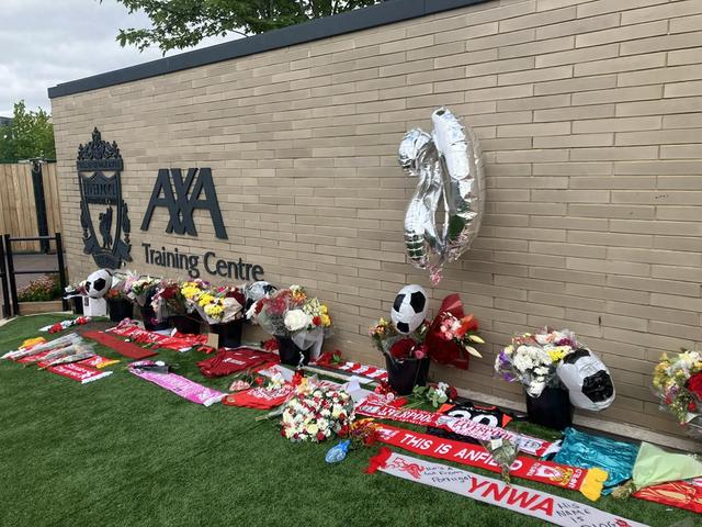 据记者Jamie Greer报道,今天是利物浦季前训练的第一天,大批球迷自发在训练中心外悼念若塔。