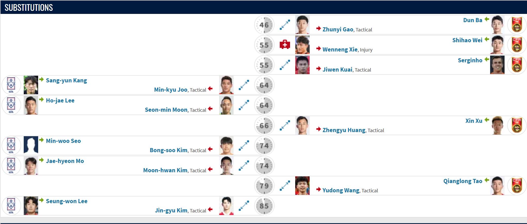 德转比赛报告:国足换上韦世豪和塞鸟是在同一次换人中进行的
